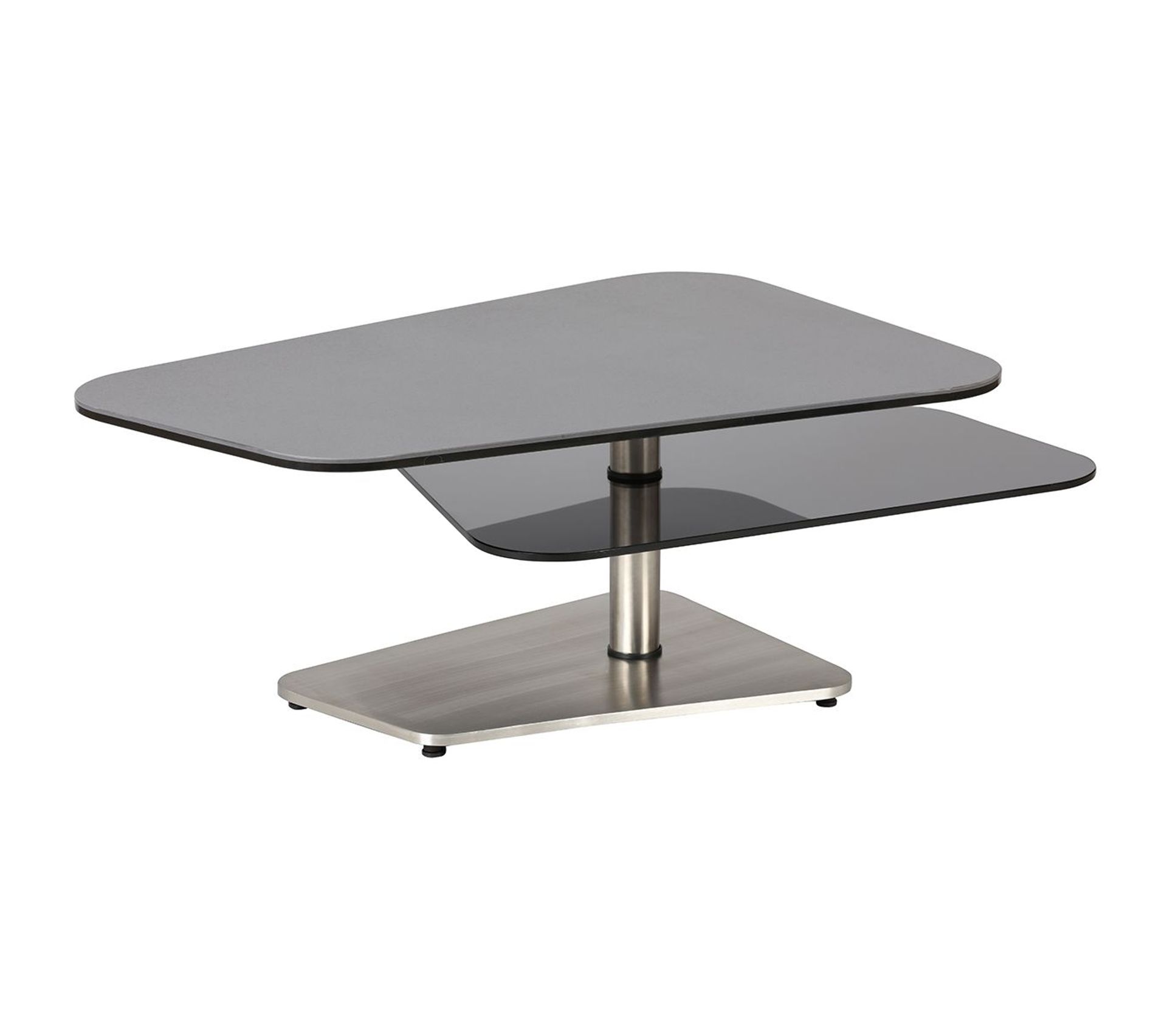 Conjugaison de métal, verre, bois et pierre pour des tables de salon design.